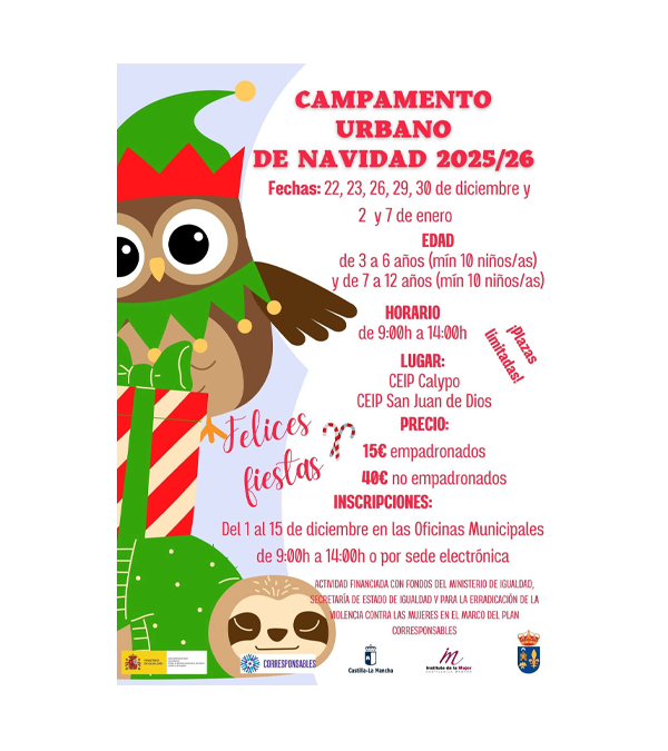 INSCRIBETE EN LAS OFICINAS MUNICIPALES O EN SEDE ELECTRÓNICA DESDE EL 1 DE DICIEMBRE HASTA EL 15 DE DICIEMBRE. EN HORARIO DE 09:00 H A 14:00 H.