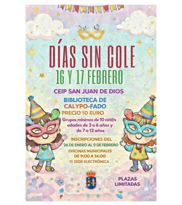 INSCRIPCIONES DESDE EL 26 DE ENERIO AL 9 DE FEBRERO. EN LAS OFICINAS MUNICIPALES EN HORARIO DE 09:00 HORAS A 14:00 HORAS O SSEDE ELECTRÓNICA.